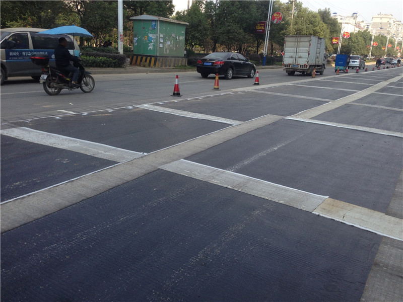 2、鋪設(shè)抗裂貼后,可以按熱瀝青混合料的施工規(guī)范,撒布乳化瀝青等粘層油,為防止車(chē)輛或攤鋪機(jī)粘結(jié)抗裂貼,可在抗裂貼上撒些細(xì)粒碎石或混合料。