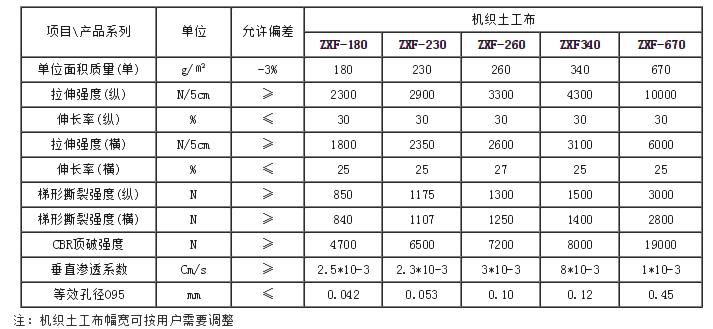 三、長絲機織土工布指標