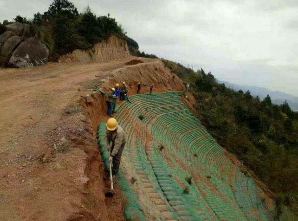 三維土工網(wǎng)墊溫度適用性較強(qiáng),在-40℃~+60℃均不受影響。施工簡(jiǎn)便,易于操作,坡面修整后即可施工,每人每天可鋪設(shè)80㎡。使用年限長(zhǎng):暴露在外不少于5年,埋于土中或植被覆蓋率達(dá)85%以上可永久使用。而且三維土工網(wǎng)墊能預(yù)制成草毯進(jìn)行異地移植,解決需快速防護(hù)的特殊工程的植被要求。使用三維土工網(wǎng)墊植草后,綠草成片覆蓋,體現(xiàn)“與自然協(xié)調(diào)”的概念,起到美化環(huán)境的作用。