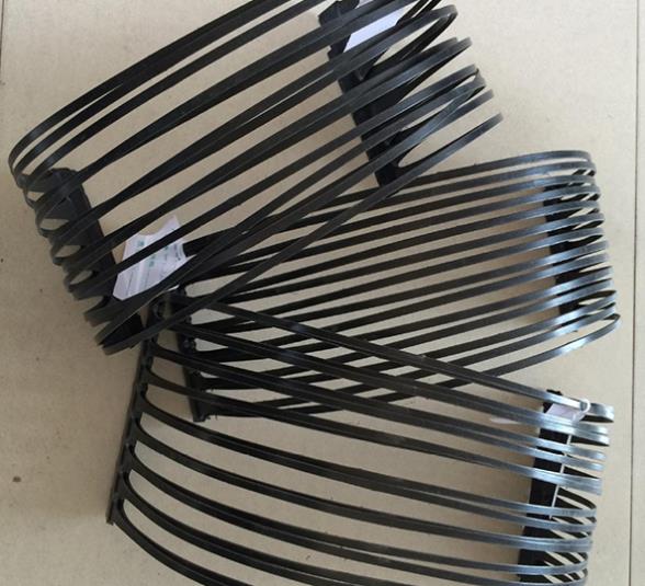 單向拉伸土工格柵是一種以高分子聚合物為主要原料,加入一定的防紫外線、抗老化助劑,經(jīng)過單向拉伸使原來分布散亂的鏈形分子重新定向排列呈線性狀態(tài),經(jīng)擠出壓成薄板再沖規(guī)則孔網(wǎng),然后縱向拉伸而成的高強度土工材料。這種過程中使高分子成定向線性狀態(tài)并形成分布均勻、節(jié)點強度高的長橢圓形網(wǎng)狀整體性結(jié)構(gòu)。此種結(jié)構(gòu)具有相當高的拉伸強度和拉伸模量,抗拉強度達到100-300KN/m,接近低碳鋼的水平,大大優(yōu)于傳統(tǒng)的或現(xiàn)有的加筋材料,特別是該公司此類產(chǎn)品更具有超國際水平的高早期(伸長率在2%—5%)拉伸強度和拉伸模量。給土壤提供了理想的力的承擔和擴散的連鎖系統(tǒng)。該產(chǎn)品拉伸強度大(>150Mpa),適應(yīng)各種土壤。